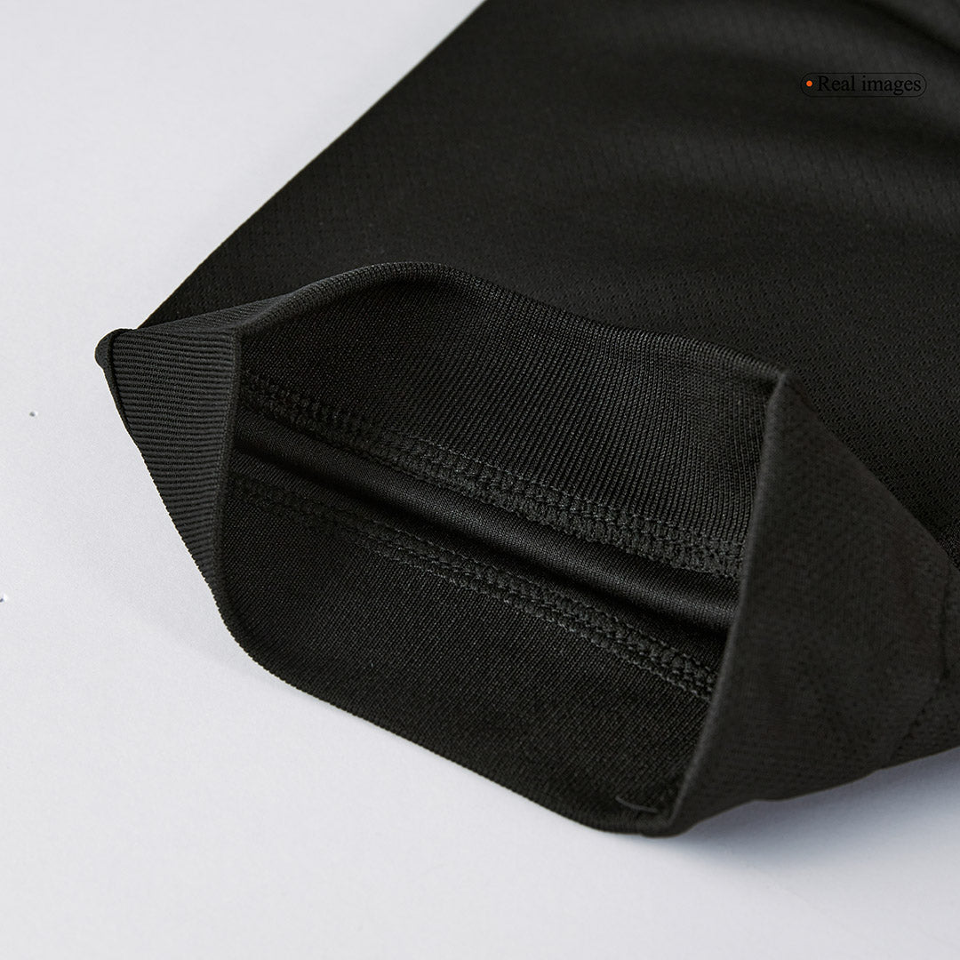 Noul tricou Barcelona X Travis Scott deplasare 2024/25 este o piesă de colecție autentică ce îmbină estetica urbană a lui Travis Scott cu tradiția fotbalistică a celebrului club catalan. Designul elegant, predominant negru, este accentuat de detalii roșii și albastre – culorile emblematice ale echipei. Logo-ul distinctiv “Cactus Jack” semnat Travis Scott este plasat vizibil, subliniind această colaborare unică dintre muzică și fotbal.